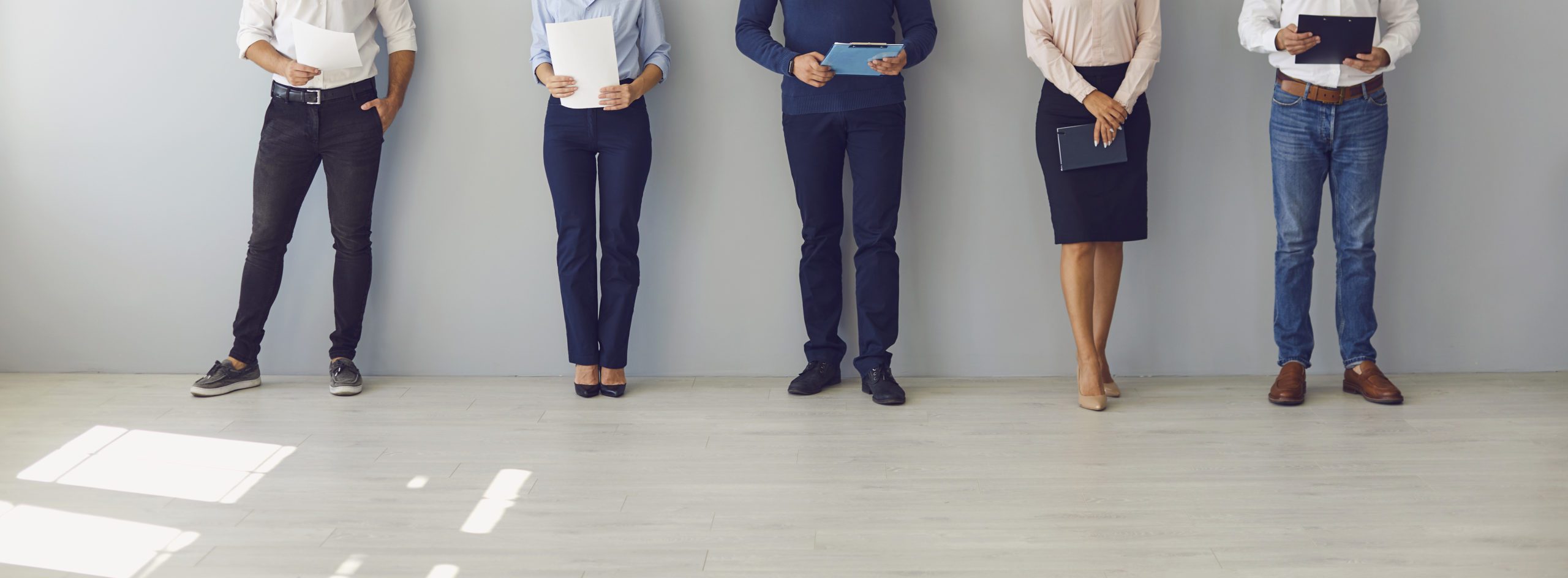 People waiting for job interview or workers waiting for boss’s invitation to sign their papers