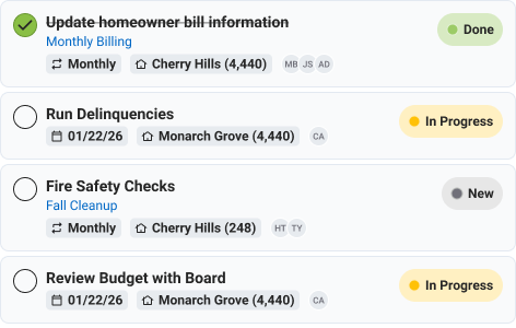 Streamline daily tasks, tracks progress, and keeps every part of community manangement organized and on track.